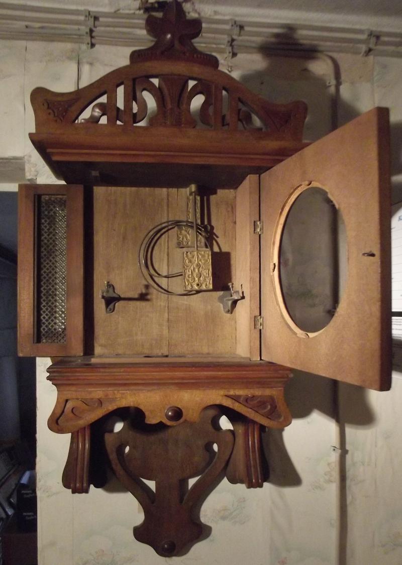 Antike Wanduhr, Freischwinger Jugendstil, um 1900/1910. Nussbaum Gehäuse. Läuft und Schlägt. Werkhersteller siehe Detailfotos. Unberührter Fundzustand. Alte Schellackoberfläche. Originale Kopfkrone. 2 Wandstellschrauben und der Aufzugschlüssel sind vorhanden. Das Zifferblatt ist ohne Schäden. Die Glasscheibe vor dem Zifferblatt fehlt. Kein erkennbarer aktiver Wurm. Keine Fehlteile. Seltener unberührter Originalzustand. Fotos sind Bestandteil der Beschreibung. Ungeschönter Fundzustand. Höhe 83 cm, Breite am Kopfprofil 39 cm, Tiefe am Kopfprofil 19 cm, Türbreite 29 cm, Ein Original aus der Zeit um 1900/1910 Weitere Wanduhren, Standuhren, Mutteruhren und Tischuhren finden Sie ebenfalls in unserem Shop. Versand 25 EUR Falls Sie noch Fragen zu diesem Artikel haben rufen Sie uns gerne an